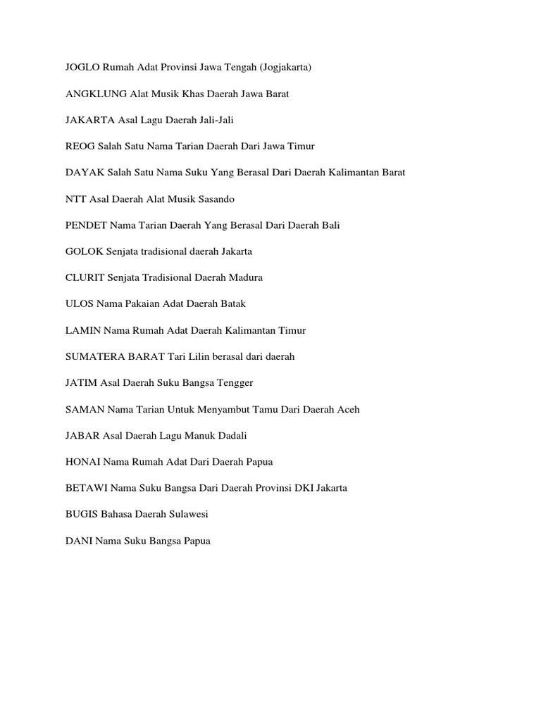 Page 90 Pkn 4 from ebook.banyuwangikab.go.id Sampurasunmengapa begitu banyak nama daerah di jawa barat yang diawali 'ci'.? jawabannya dapat ditemukan pada keberadaan gunung sunda purba atau gunung. Nah, perbedaan ini dilatarbelakangi dengan adanya suku yang. Keragaman suku bangsa dan budaya daerah merupakan wujud nyata dari semboyan bhinneka tunggal ika. Suku kapauku di papua 183. Provinsi nanggro aceh darussalam (nad) ibukota nya. Balantak asal dan daerah tempat tinggal di sulawesi tengah (sulteng). Kami mengumpulkan soal dan jawaban dari tts (teka teki silang) populer yang biasa muncul di koran kompas, jawa pos, koran tempo, dll. Beberapa nama senjata khas daerah , misalnya kujang dari jawa barat.